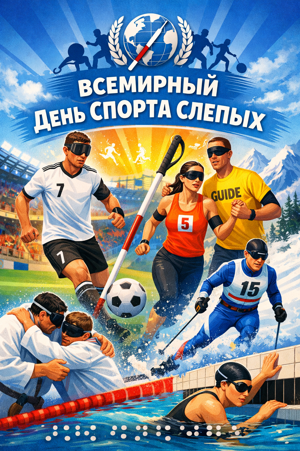 Всемирный день спорта слепых учреждён в 2021 году в честь годовщины создания Международной федерации спорта слепых (IBSA) в 1981 году. Цель этого дня – привлечь внимание к спорту для людей с нарушениями зрения и повысить осведомленность о возможностях для их участия в спортивной жизни.