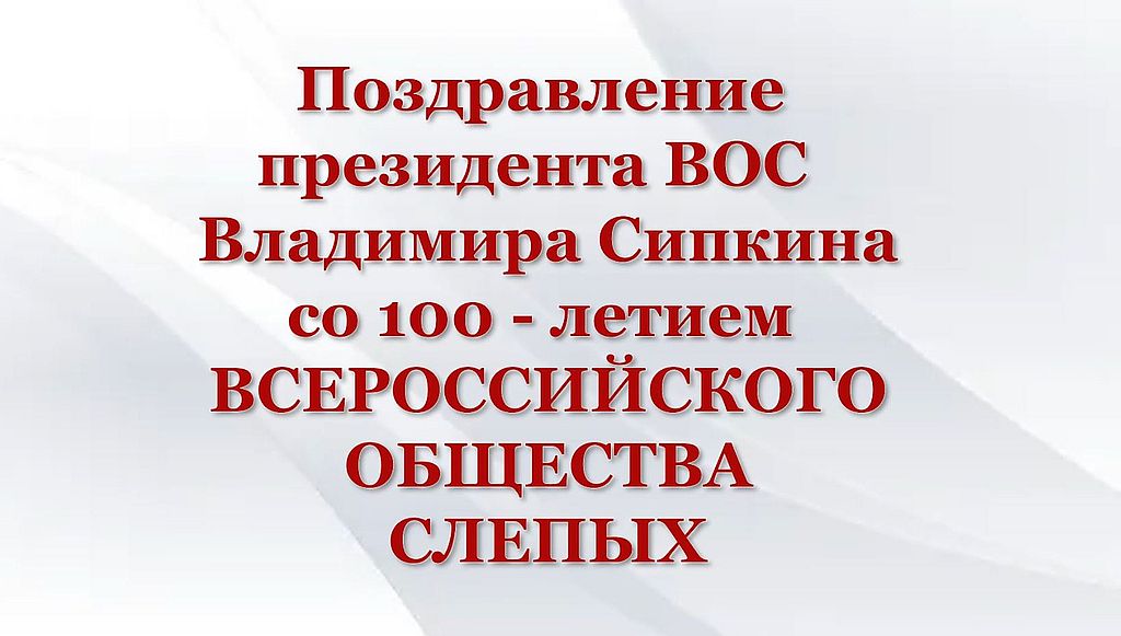 Поздравление президента ВОС В. В. Сипкина со 100-летием Всероссийского общества слепых