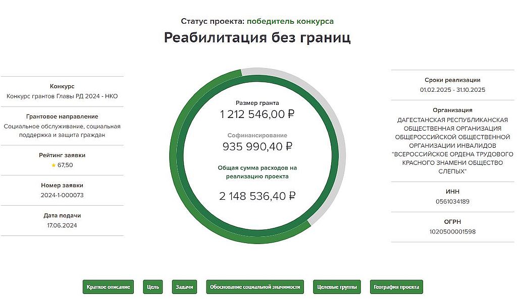 Проект Дагестанской РО ВОС «Реабилитация – без границ» стал победителем конкурса грантов Главы Республики Дагестан